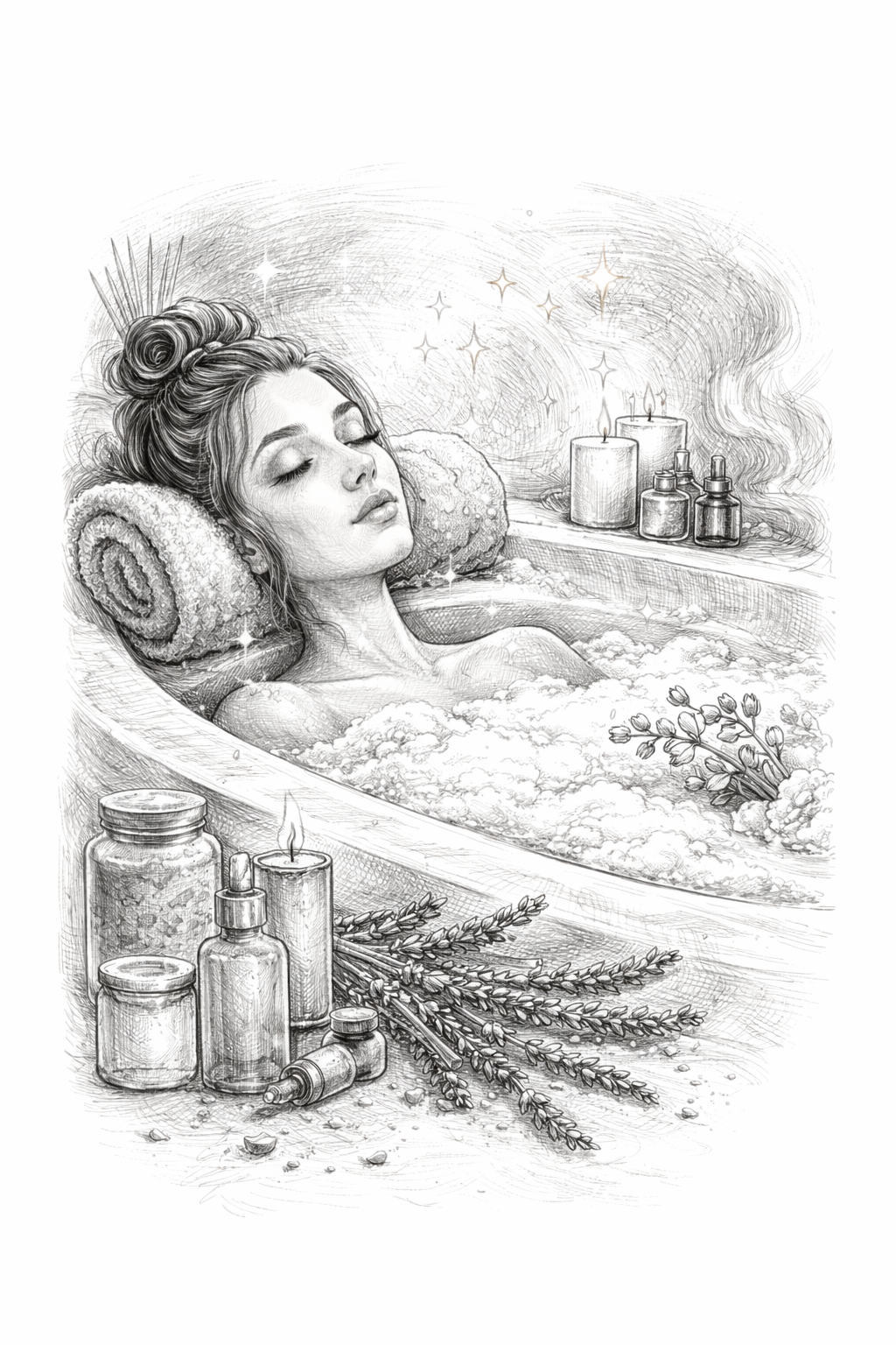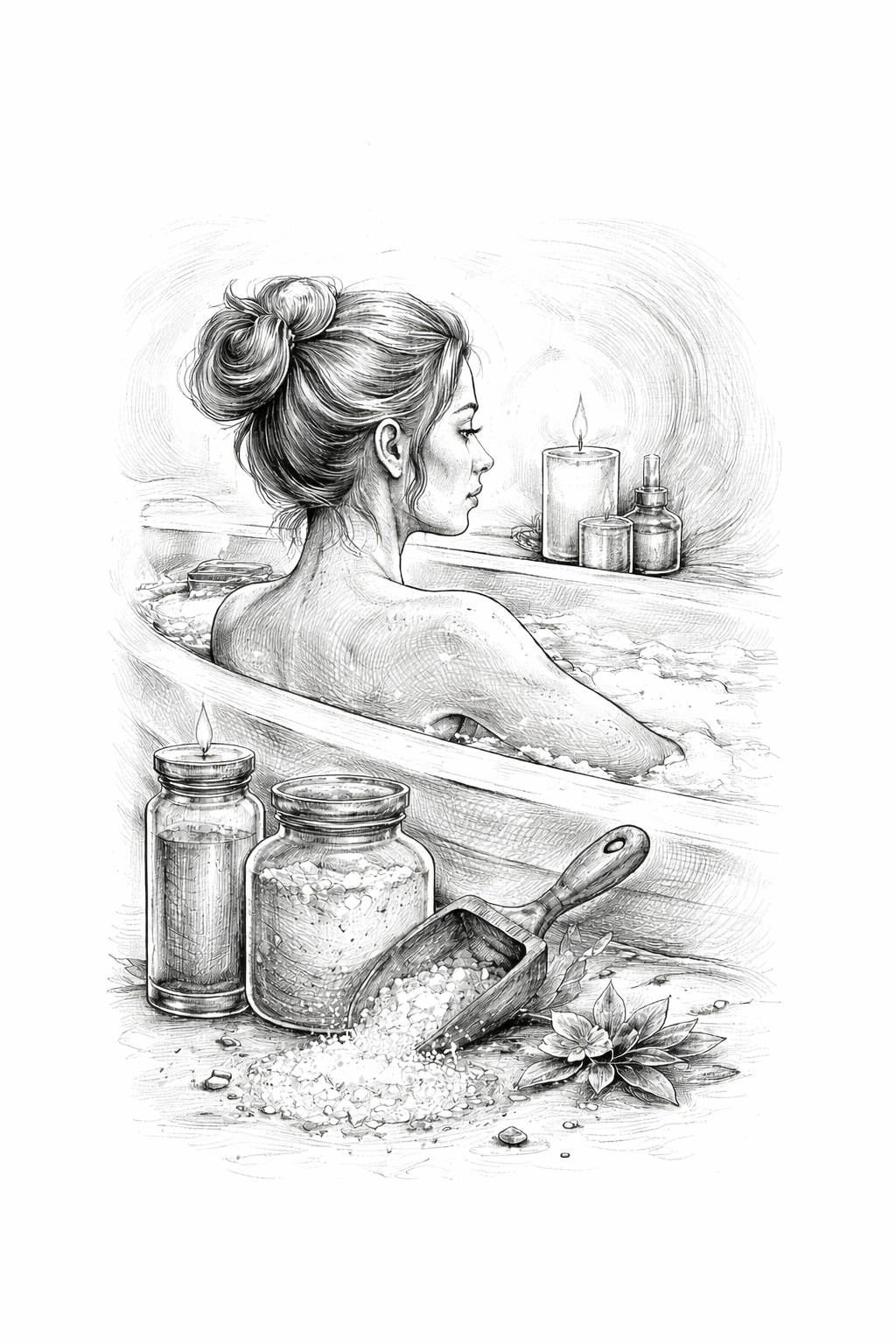 Pe măsură ce apa se îmbogățește cu săruri minerale și arome delicate, intră în cadă și bucură-te de câteva momente de liniște. Recomandăm o baie de aproximativ 15–20 de minute, timp în care corpul se poate relaxa, iar pielea se poate bucura de ingredientele din apă.