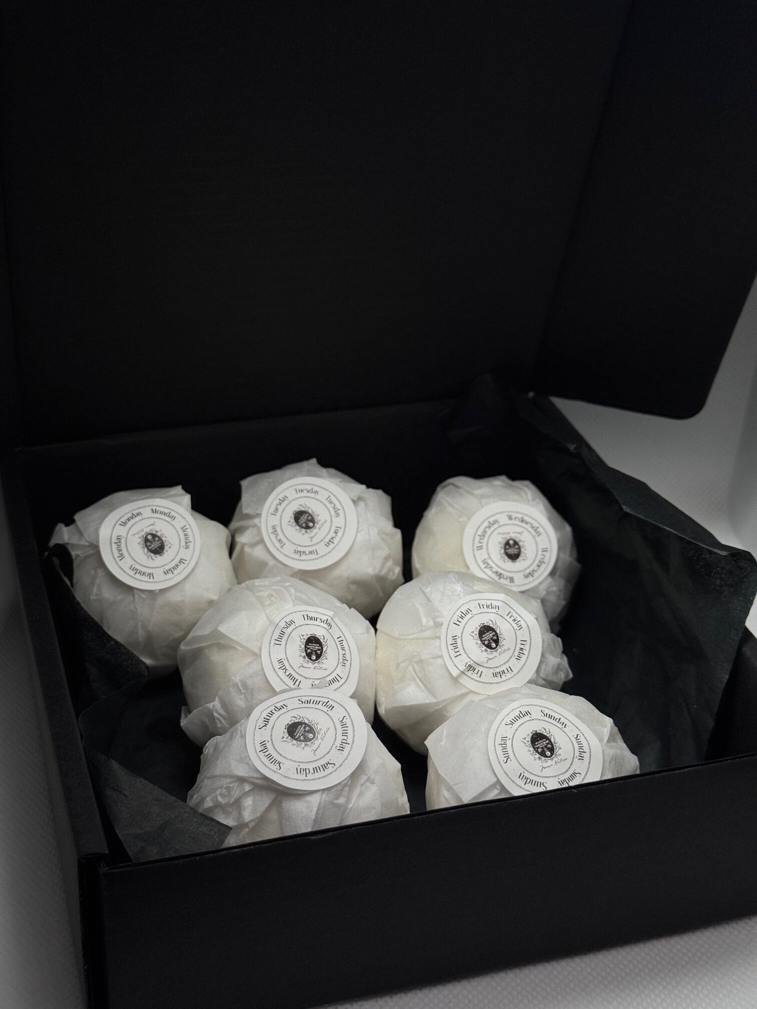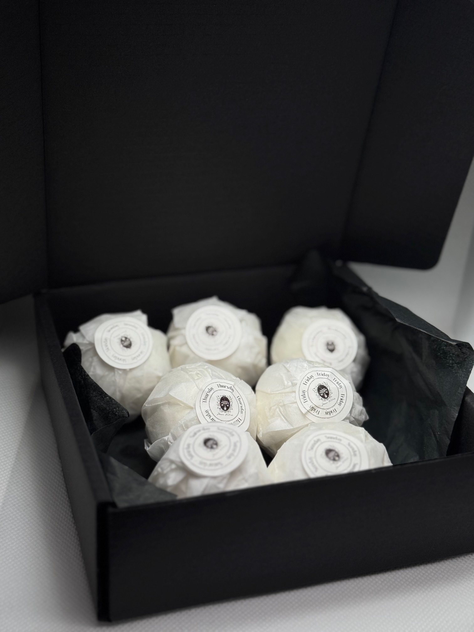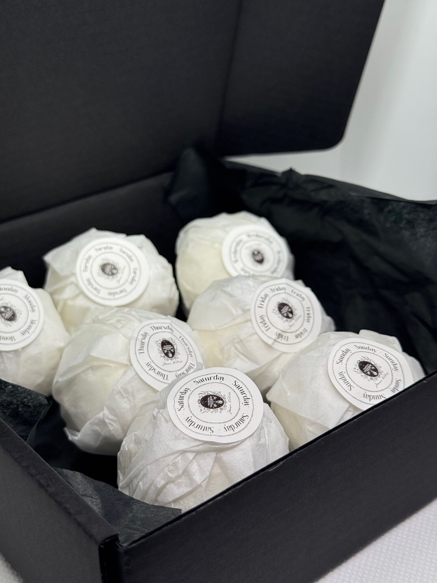 Ambalate într-o cutie neagră elegantă, pastilele formează un ritual complet — de luni până duminică.